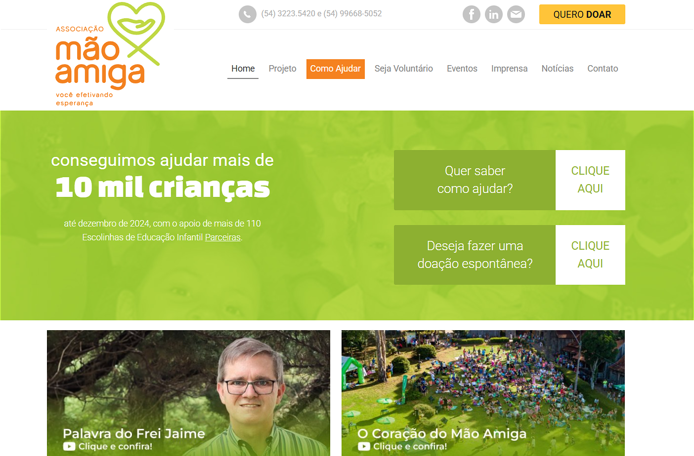 - Múltiplos canais de doação integrados, incluindo apadrinhamento recorrente e incentivos fiscais